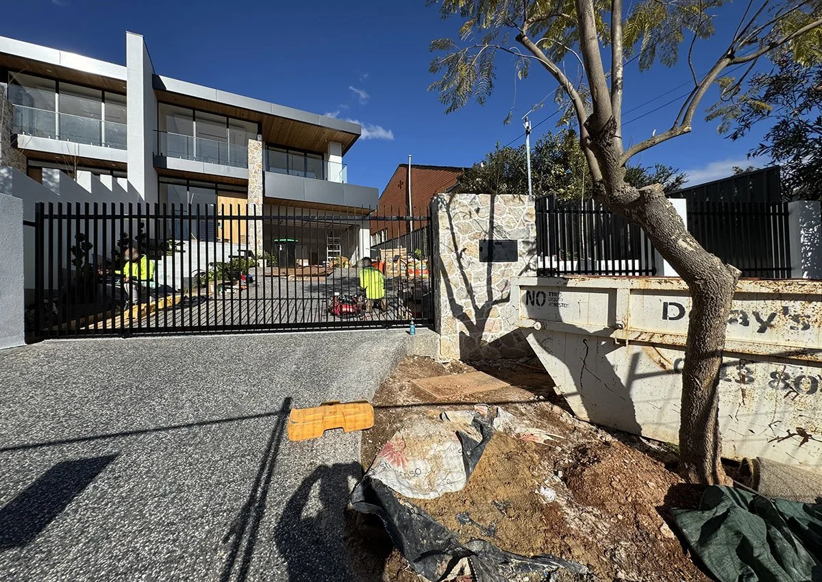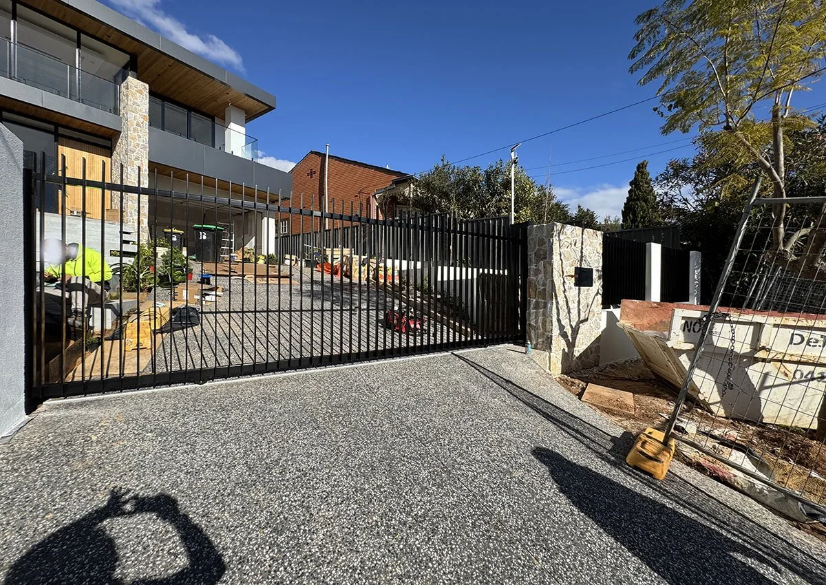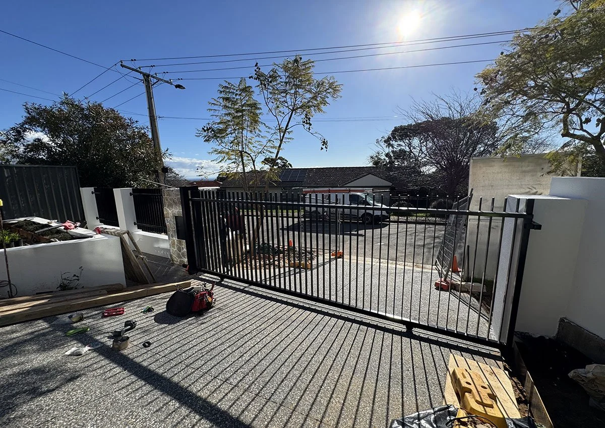 Tubular security fence with 24V sliding gate plus manual swing gate plus pedestrian gate plus letter box in Elizabeth Concrete also and driveway